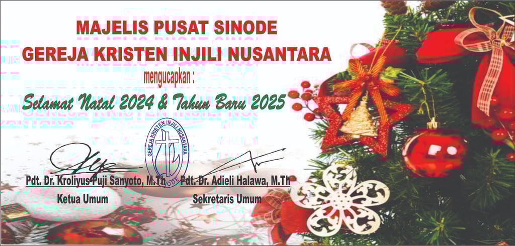 Selamat Natal 2024 dan Tahun Baru 2025. Kiranya damai dan sejahtera Kristus menyertai Bapak/Ibu Gembala dan seluruh jemaat GKIN. Amin.